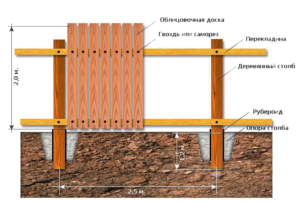 Конструкция забора из евроштакетника на ленточном фундаменте