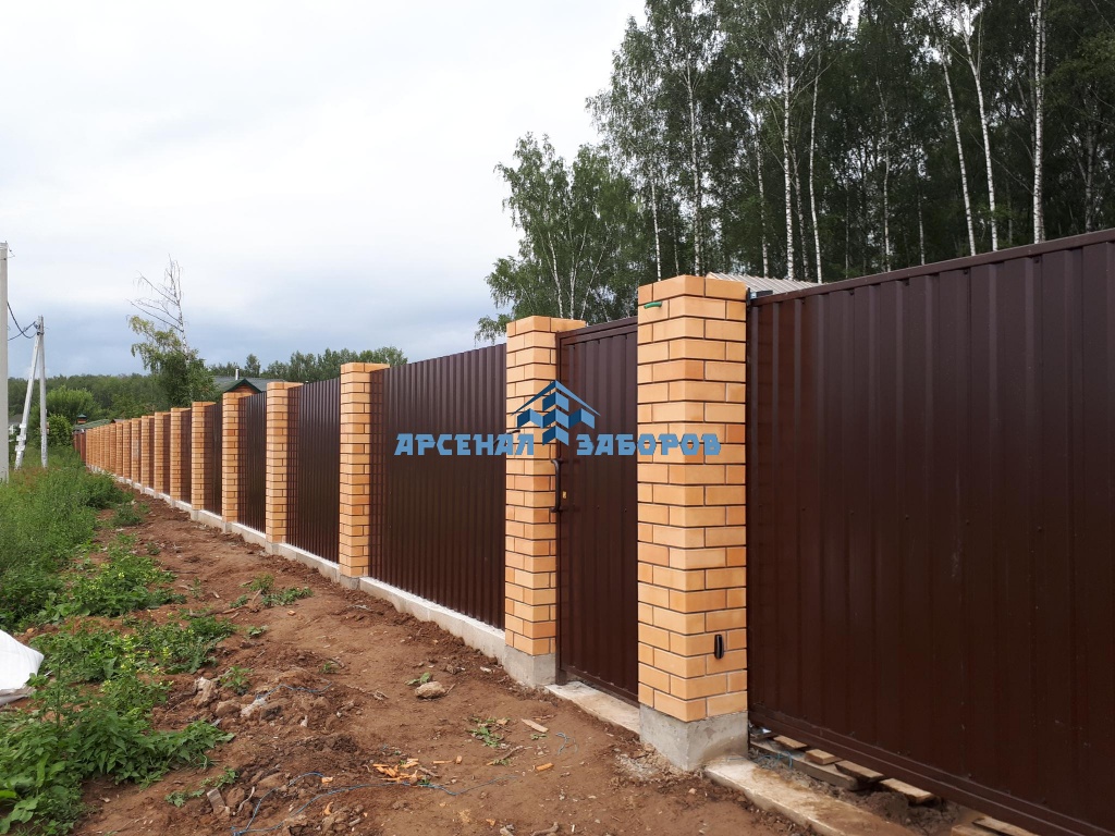 Кирпичный забор на ленточном фундаменте 12 метров