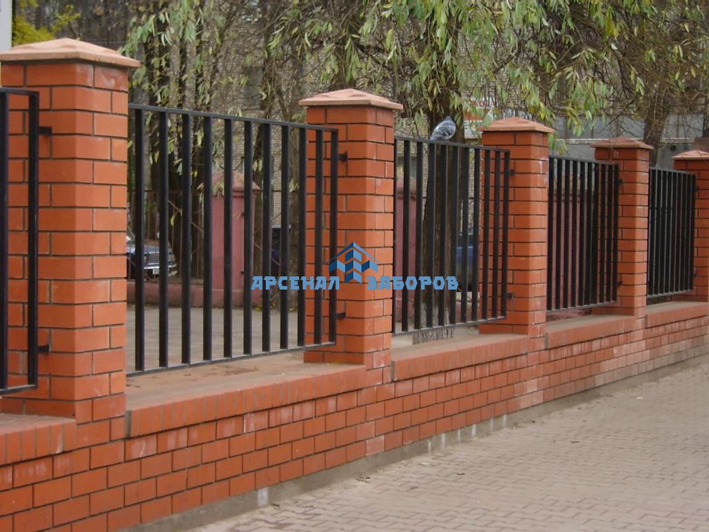Сварные заборы с кирпичными столбами 20 метров